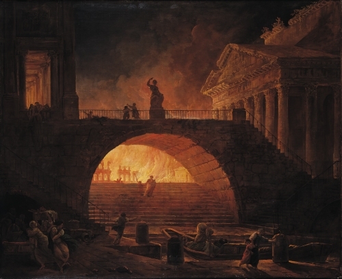 Hubert Robert (undated, he lived 1733-1808), A Fire in Rome.